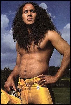 nuthood (besides waving yellow bath towels) is wearing a Troy Polamalu jersey.